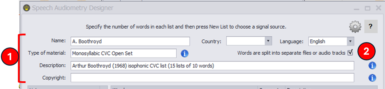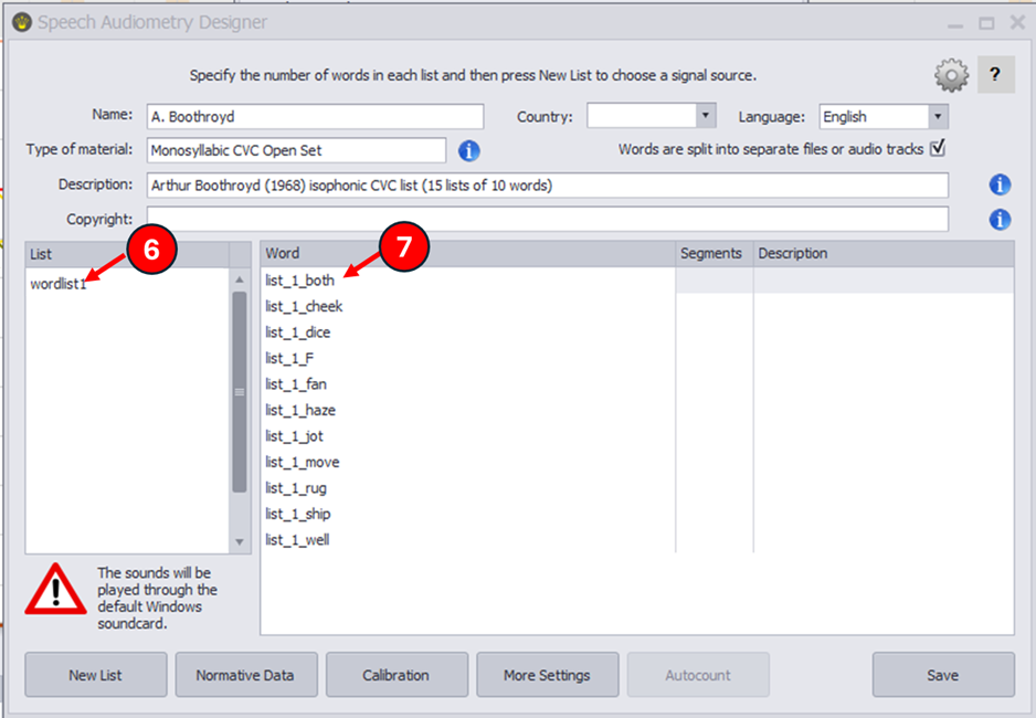 If you have a speech test with word lists, either as wave files or as audio tracks, these lists can be uploaded into A§E.