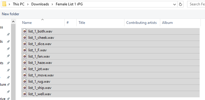 (2) Specify whether each wave file contains a single item or a whole list of items.