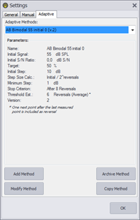 Typically, the first presentation level is high, and the next levels will go up and down to converge to the SRT. Typically, the step size between two successive presentation levels becomes smaller during the test execution.