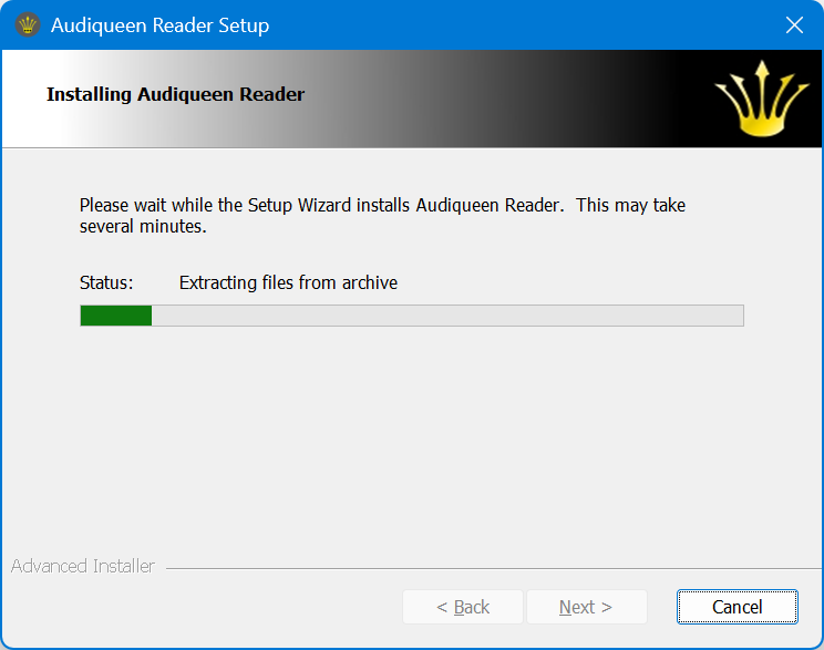 ![]() | Download Audiqueen Reader here. Run the downloaded file Audiqueen Reader xxx Installer.exe When asked to go to Microsoft’s Store, skip this and Install anyway. Audiqueen Reader starts its installation. Accept the Licence Agreement and click Next when asked to proceed. |