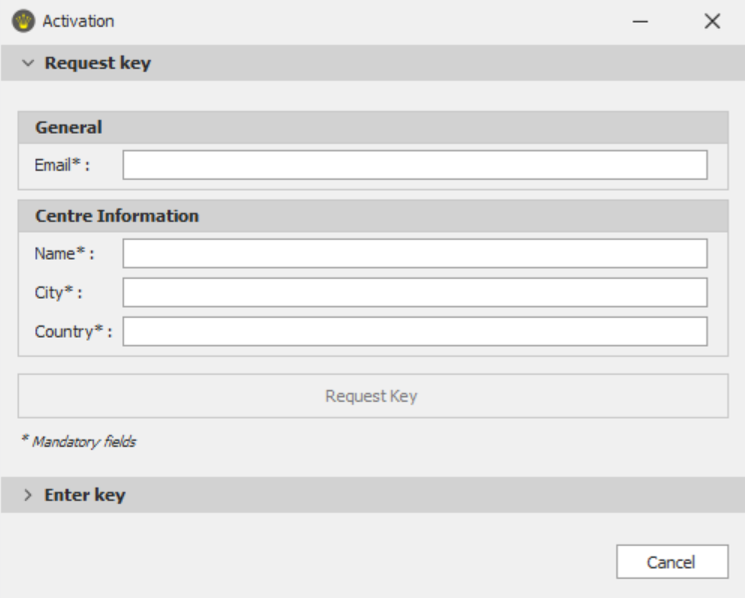 ![]() | Since this is your first time, you’ll have to activate Audiqueen Reader (only once) by entering all requested data. If the data are not correct, Audiqueen Reader will fail. Click on Request Key. |